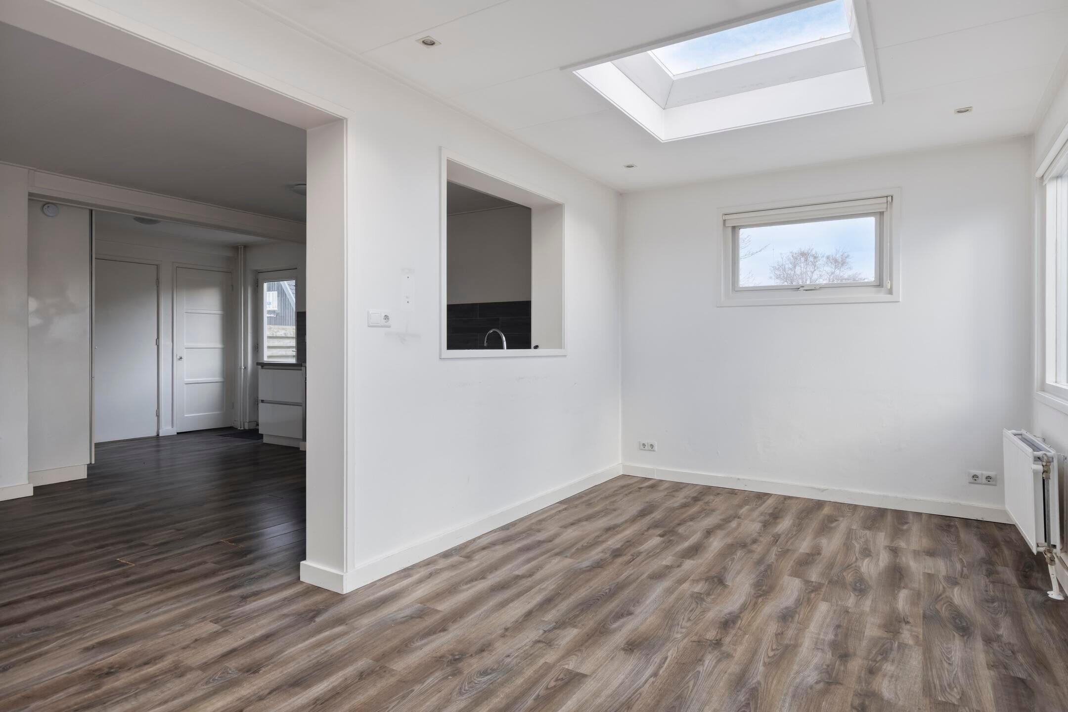 De woonkamer is gelegen aan de voorzijde van de woning en meet circa 3,81 m x 5,97 m (ca. 22,7 m²). Een prettige, lichte ruimte met voldoende privacy ten opzichte van de keuken.