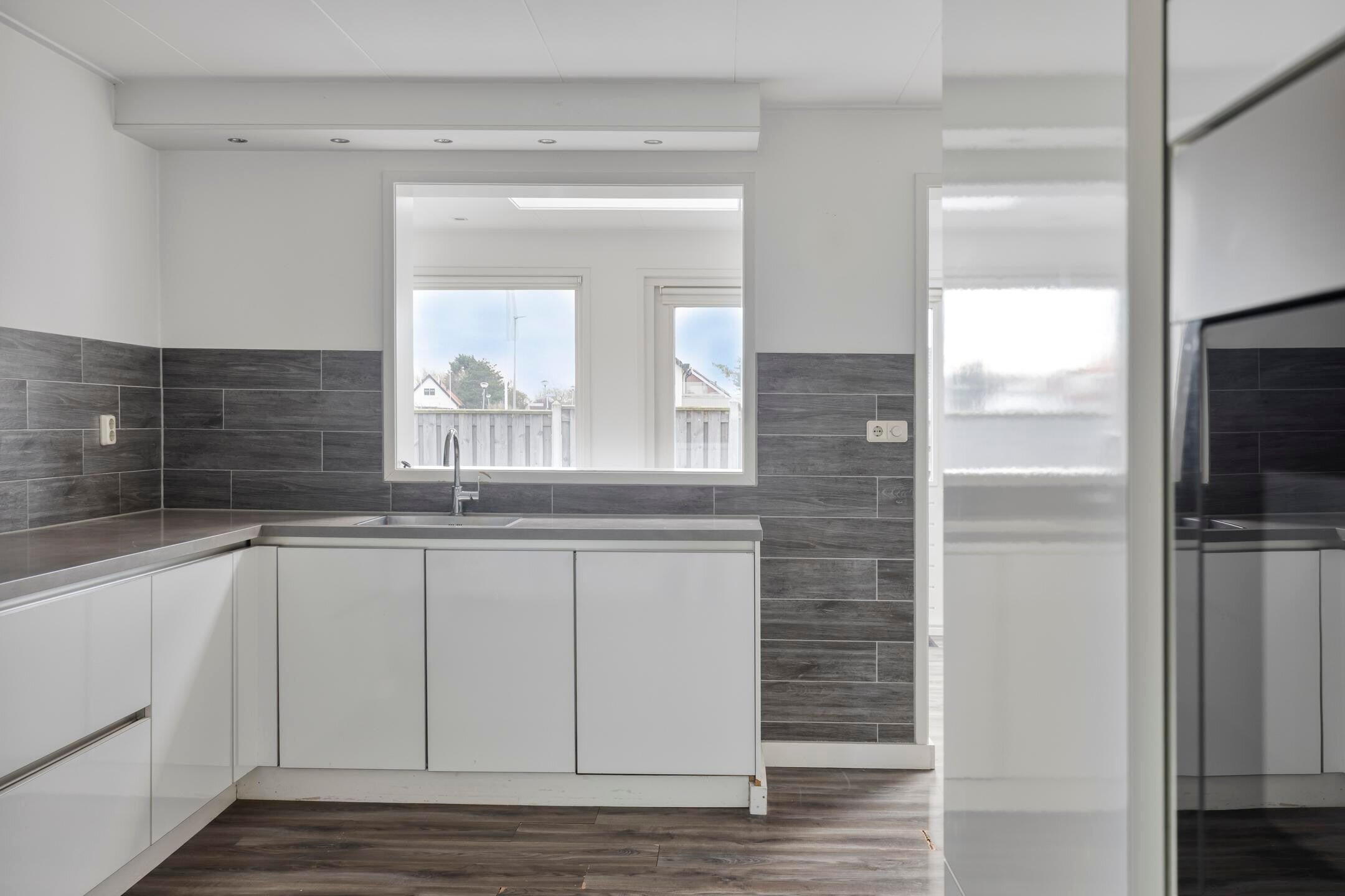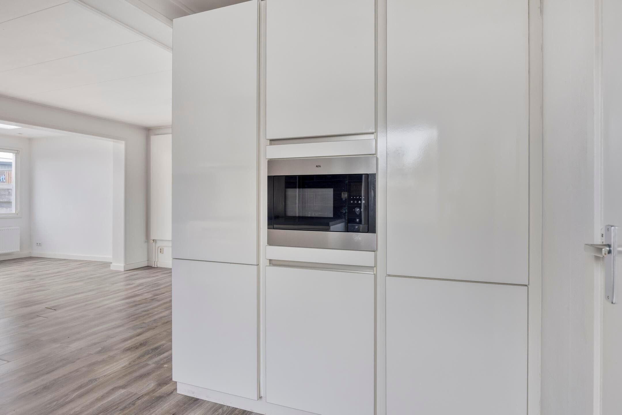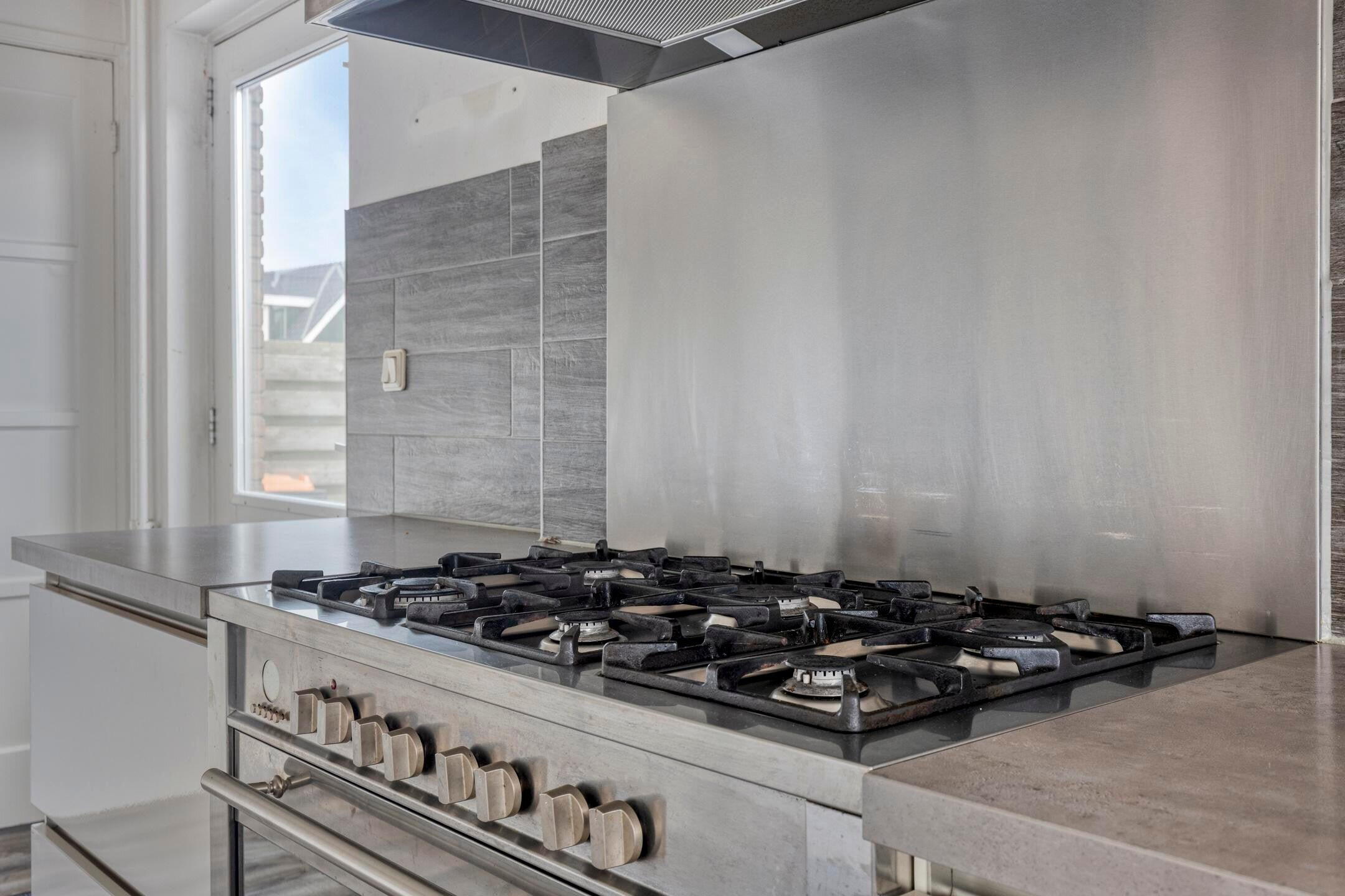 De keuken is voorzien van een inbouwkeuken (2010) met diverse inbouwapparatuur, waaronder koelkast/vriezer, oven, magnetron/oven, vaatwasser en een Amerikaans gasfornuis. Vanuit de keuken is er een aparte zij-entree vanuit de tuin. De aanbouw beschikt over openslaande deuren naar de achtertuin, waardoor binnen en buiten mooi in elkaar overlopen.