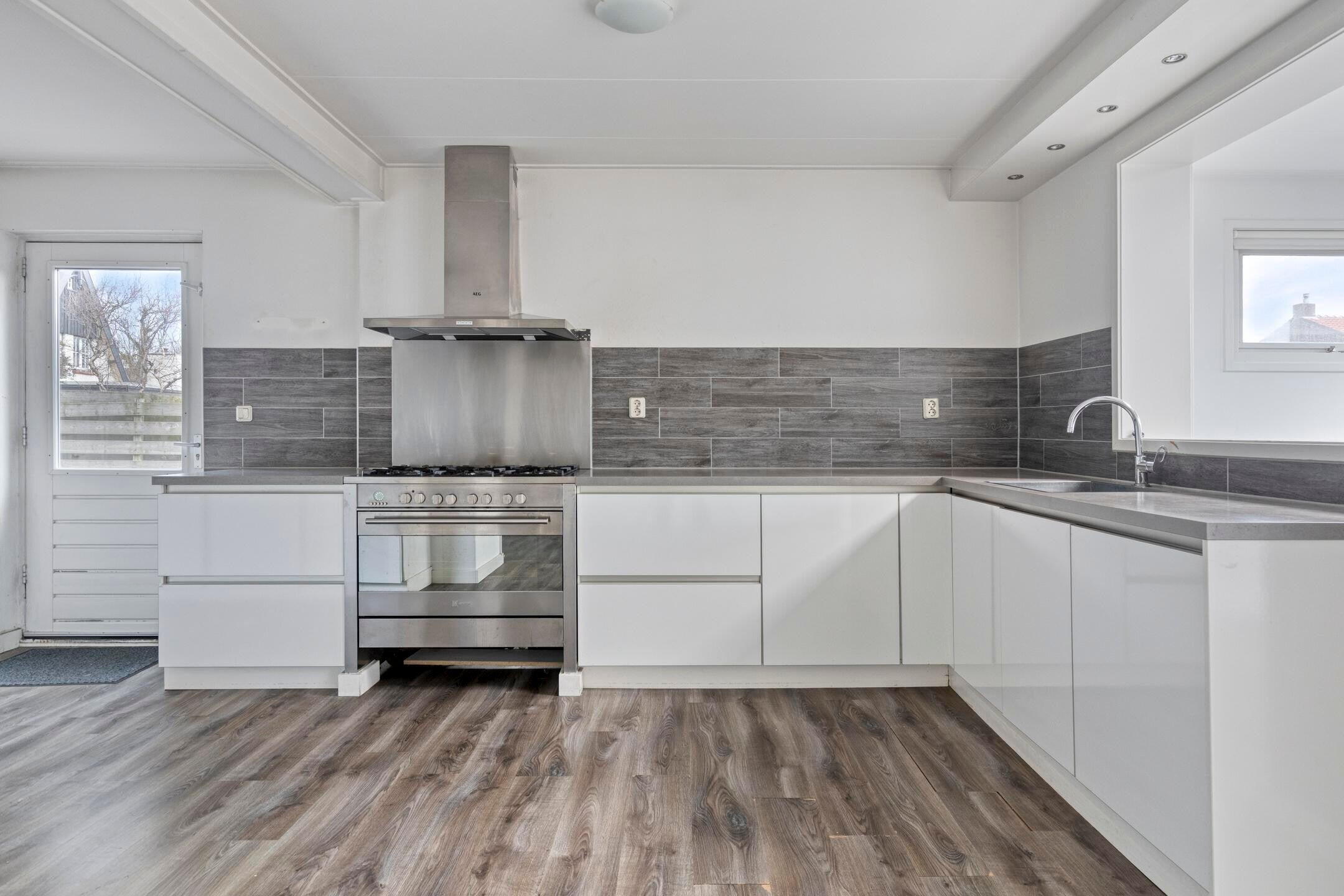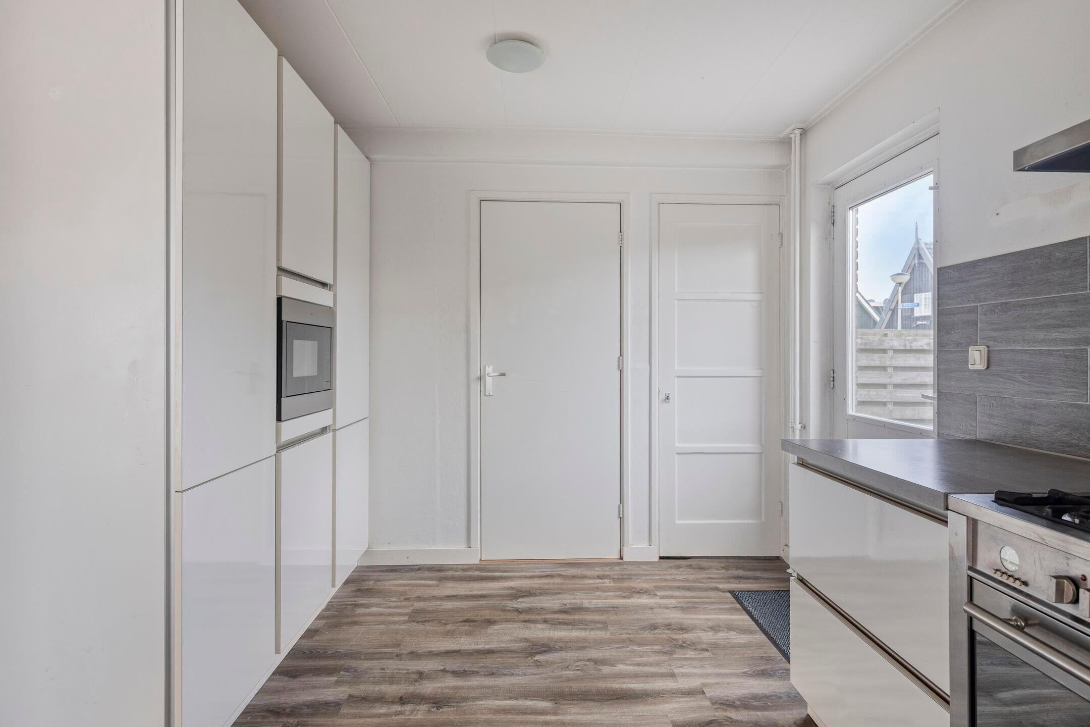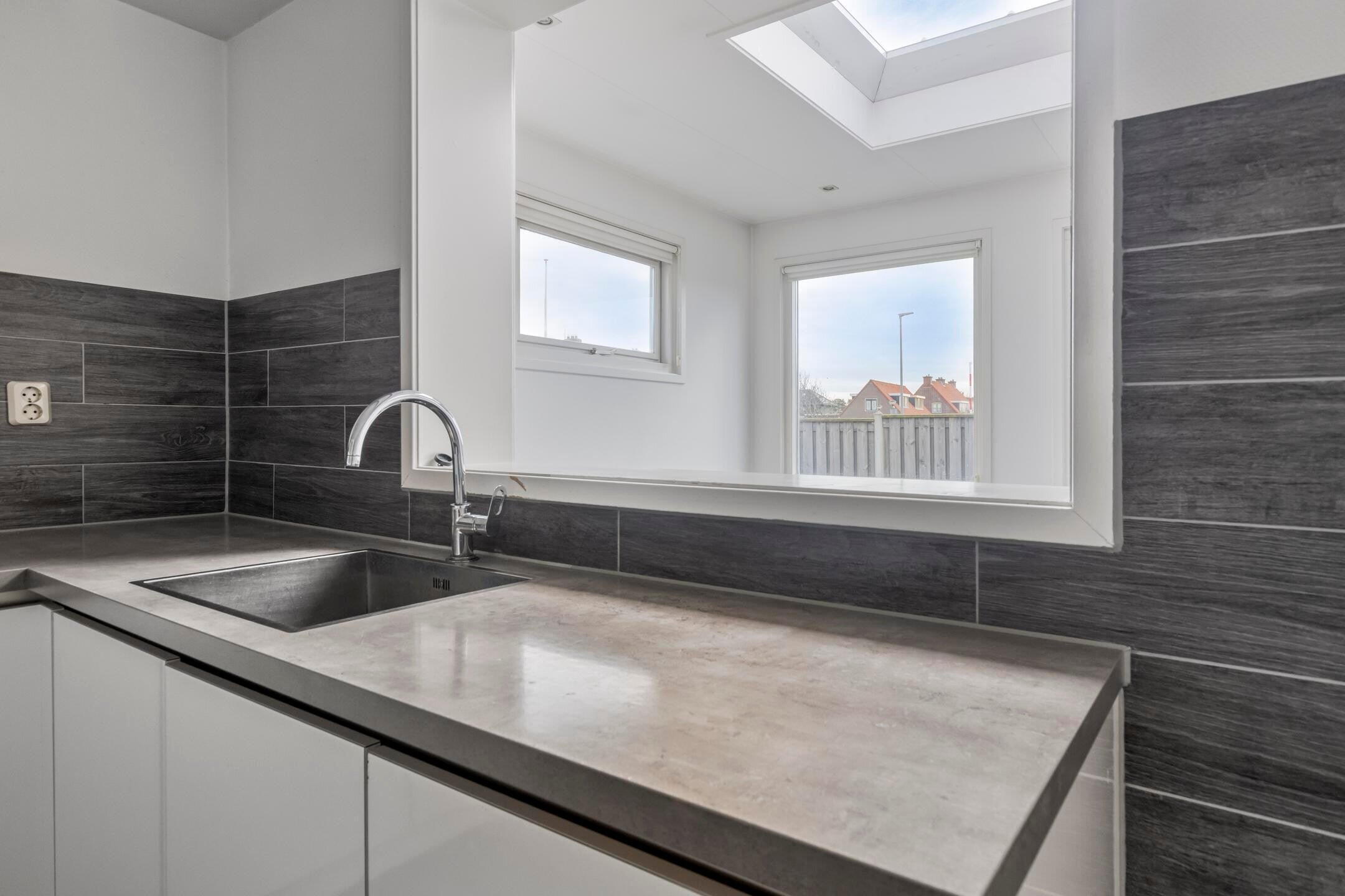 De keuken is voorzien van een inbouwkeuken (2010) met diverse inbouwapparatuur, waaronder koelkast/vriezer, oven, magnetron/oven, vaatwasser en een Amerikaans gasfornuis. Vanuit de keuken is er een aparte zij-entree vanuit de tuin. De aanbouw beschikt over openslaande deuren naar de achtertuin, waardoor binnen en buiten mooi in elkaar overlopen.