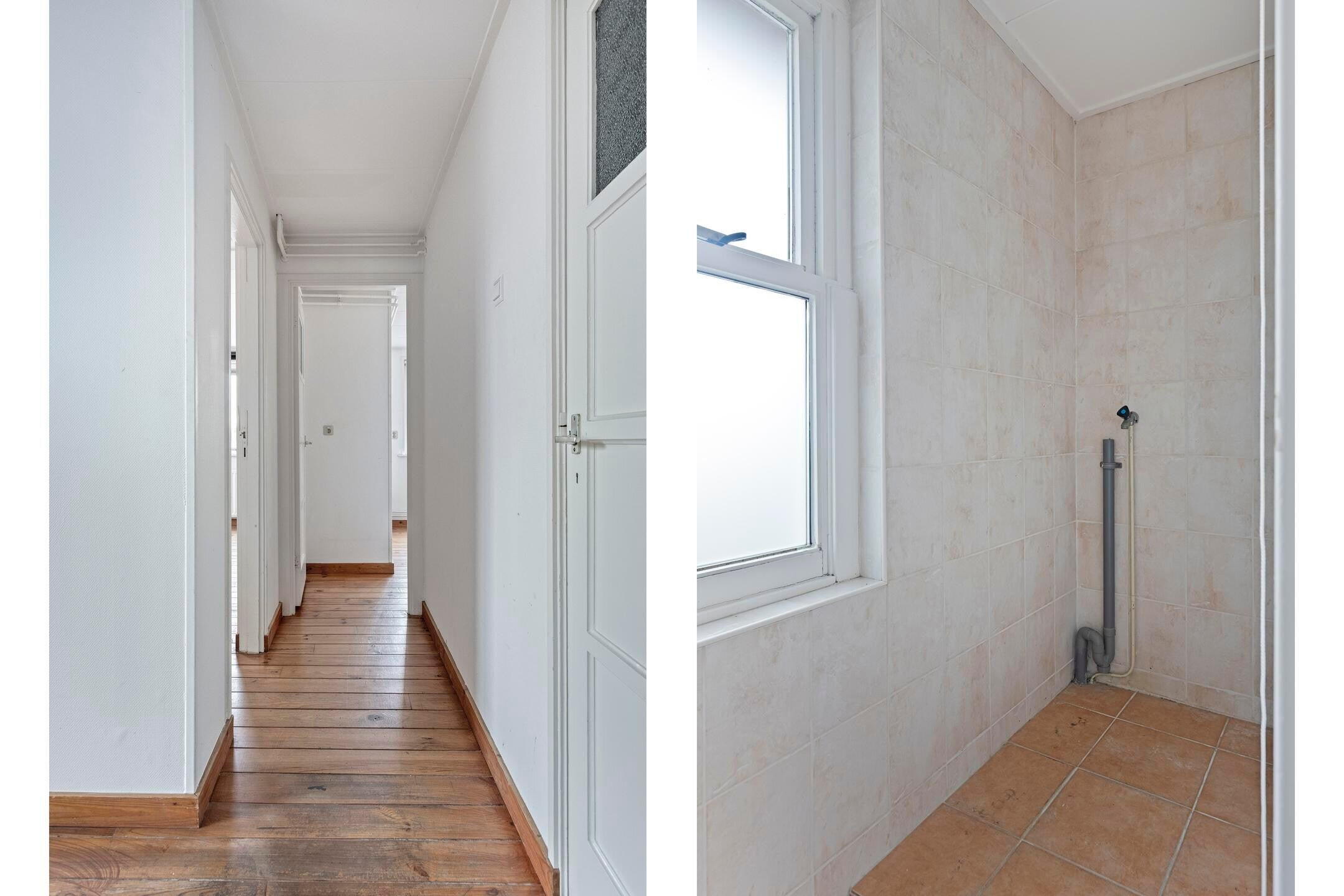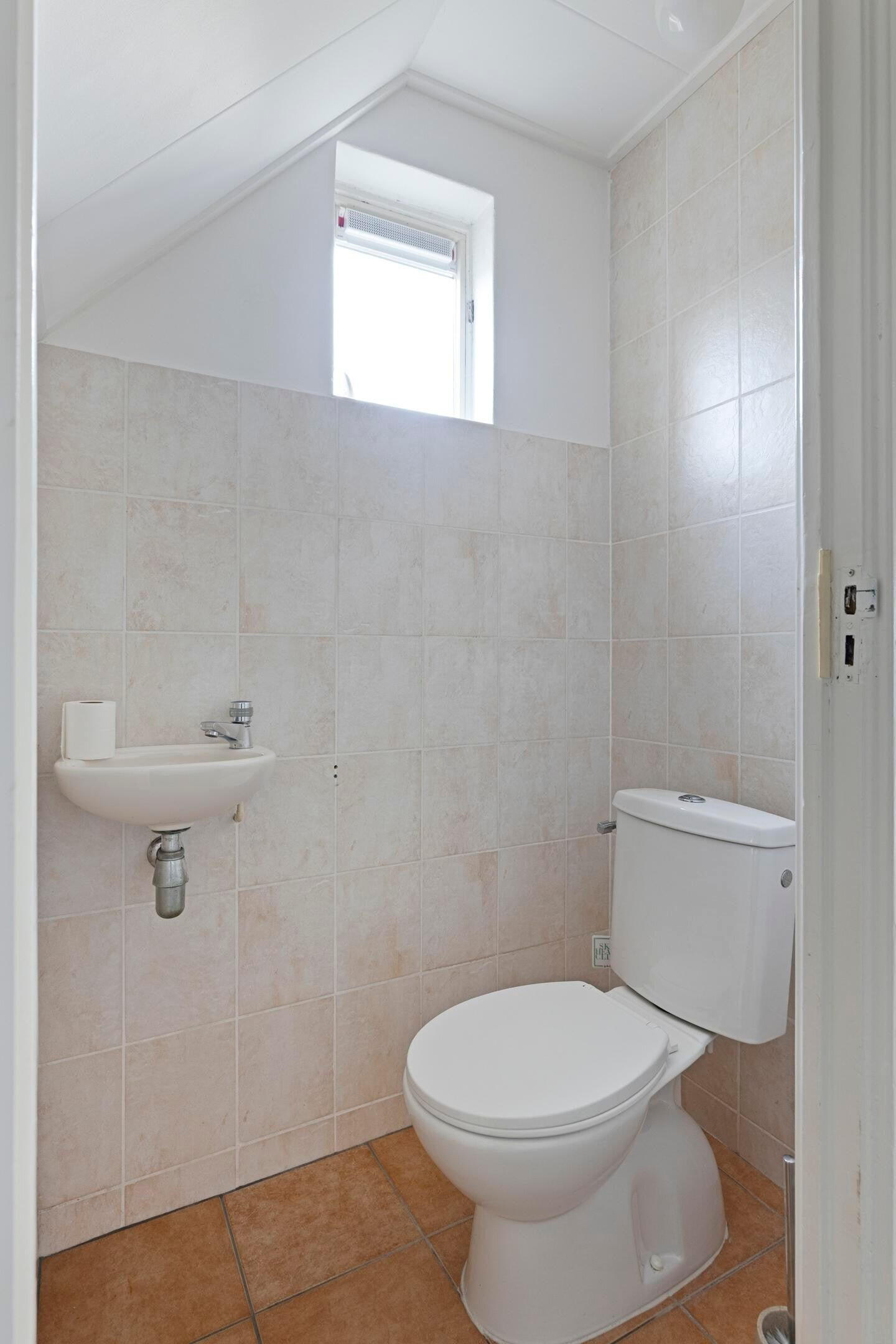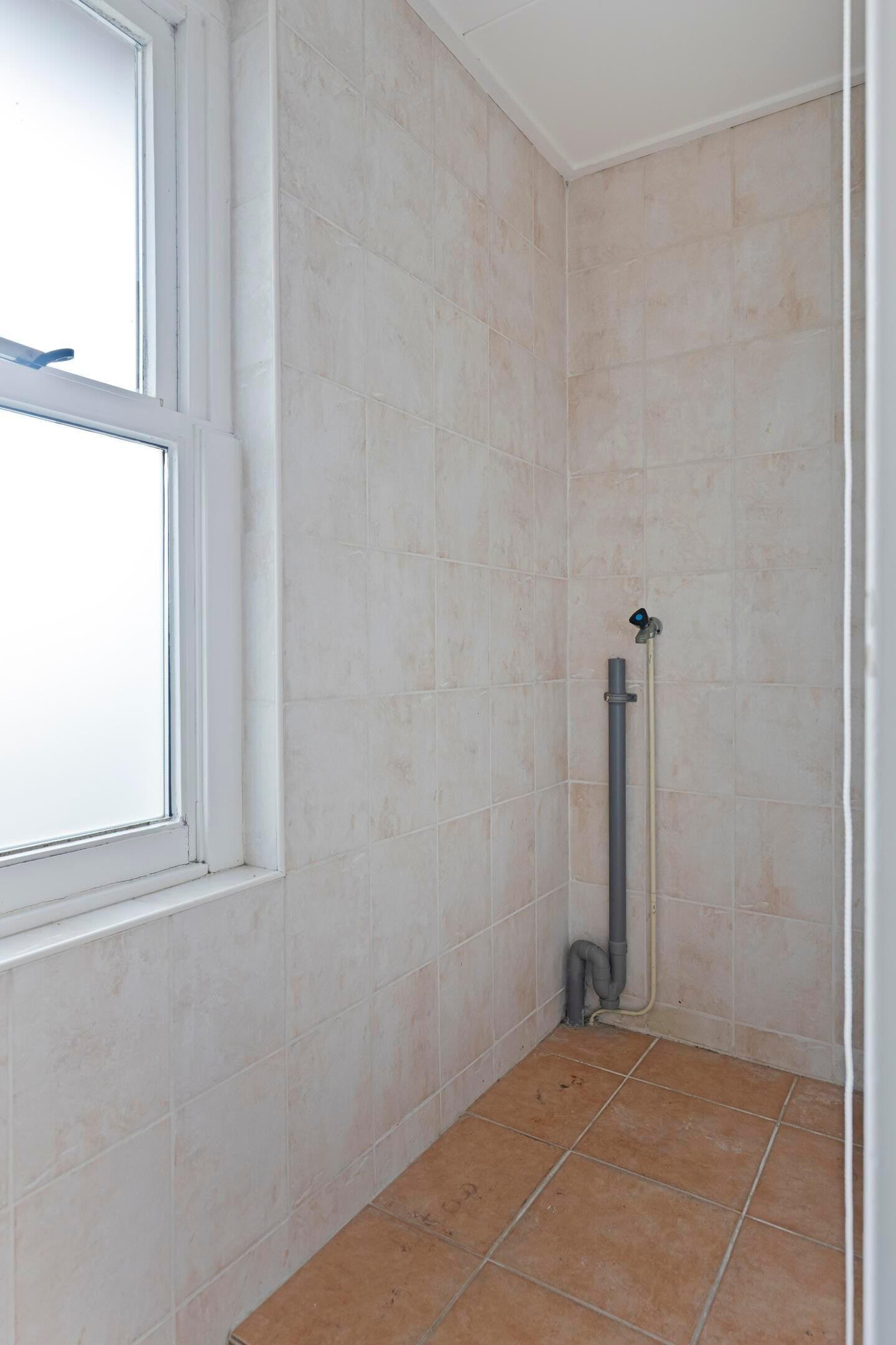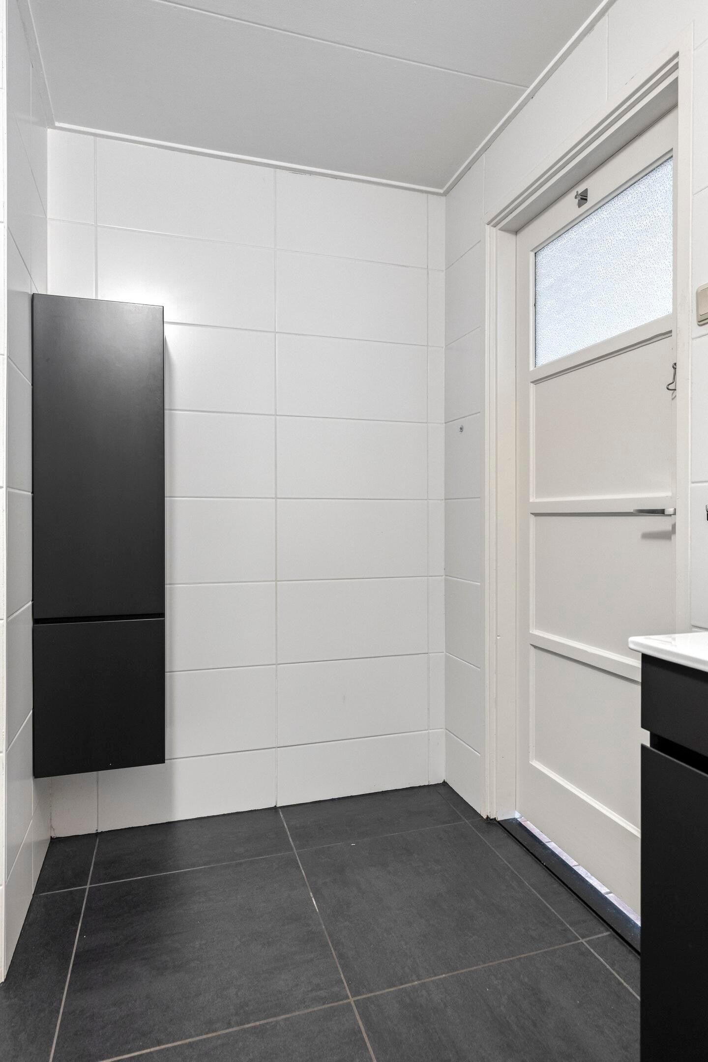 De badkamer, vernieuwd in 2022, meet circa 2,97 m x 2,00 m (ca. 6 m²) en is voorzien van douche, toilet en wastafel. Daarnaast is er een separate wasruimte voor wasmachine en droger.