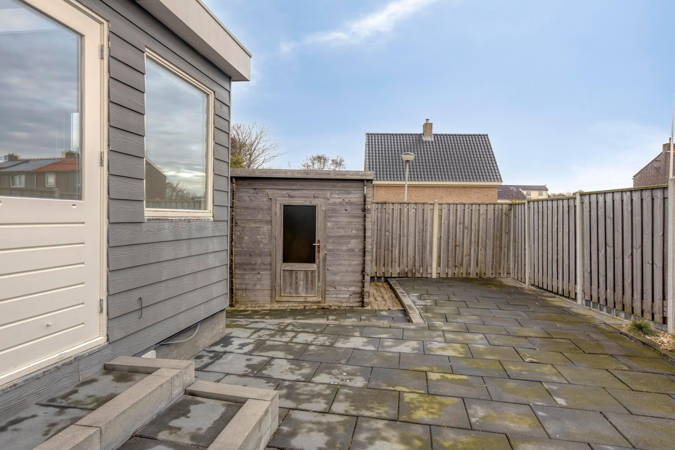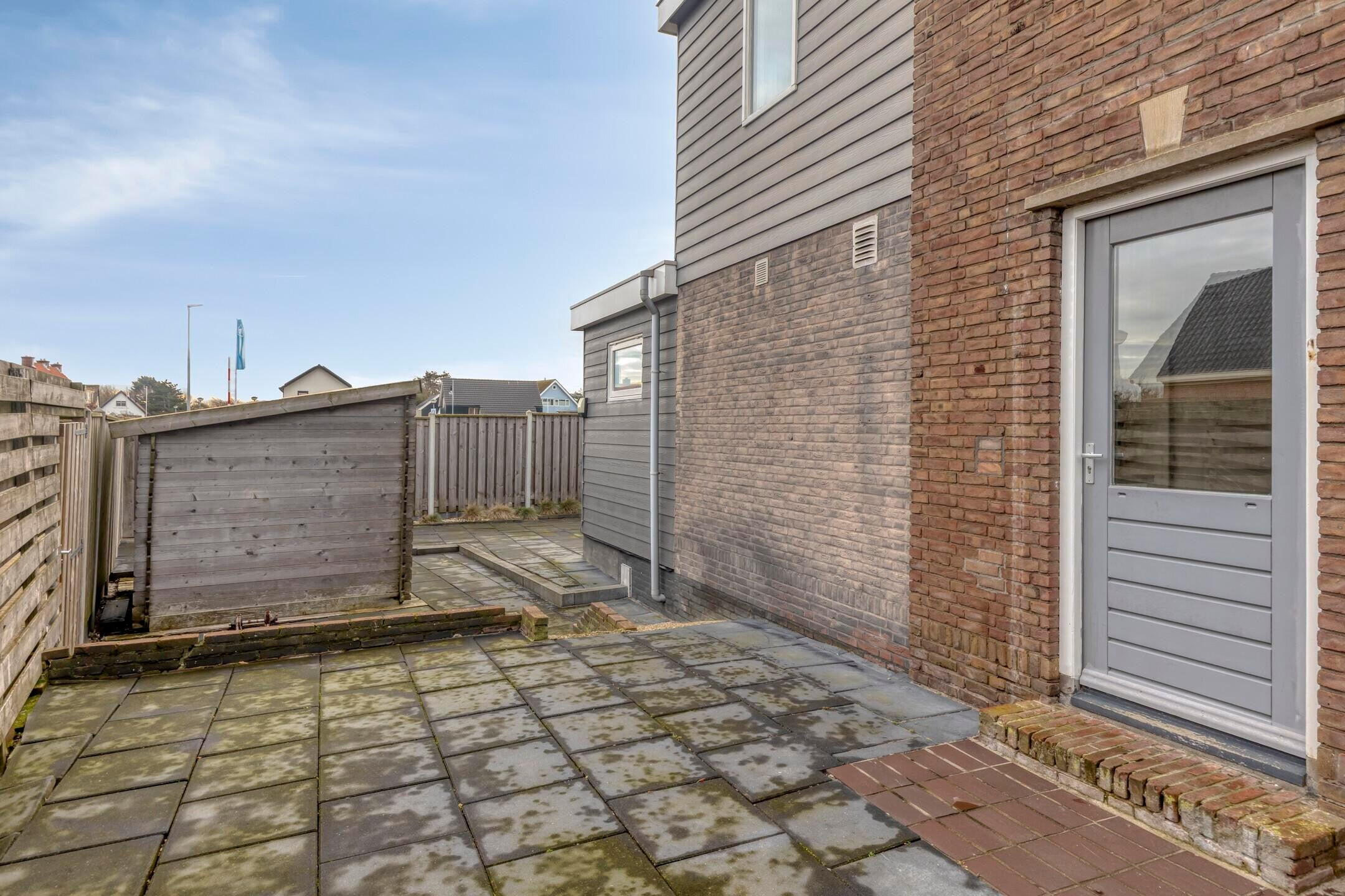 De woning beschikt over een achter- en zijtuin met een losse houten berging. De tuin is netjes onderhouden, maar biedt ruimte voor eigen invulling. De voortuin is aangelegd in duinstijl en sluit aan bij de natuurlijke omgeving.