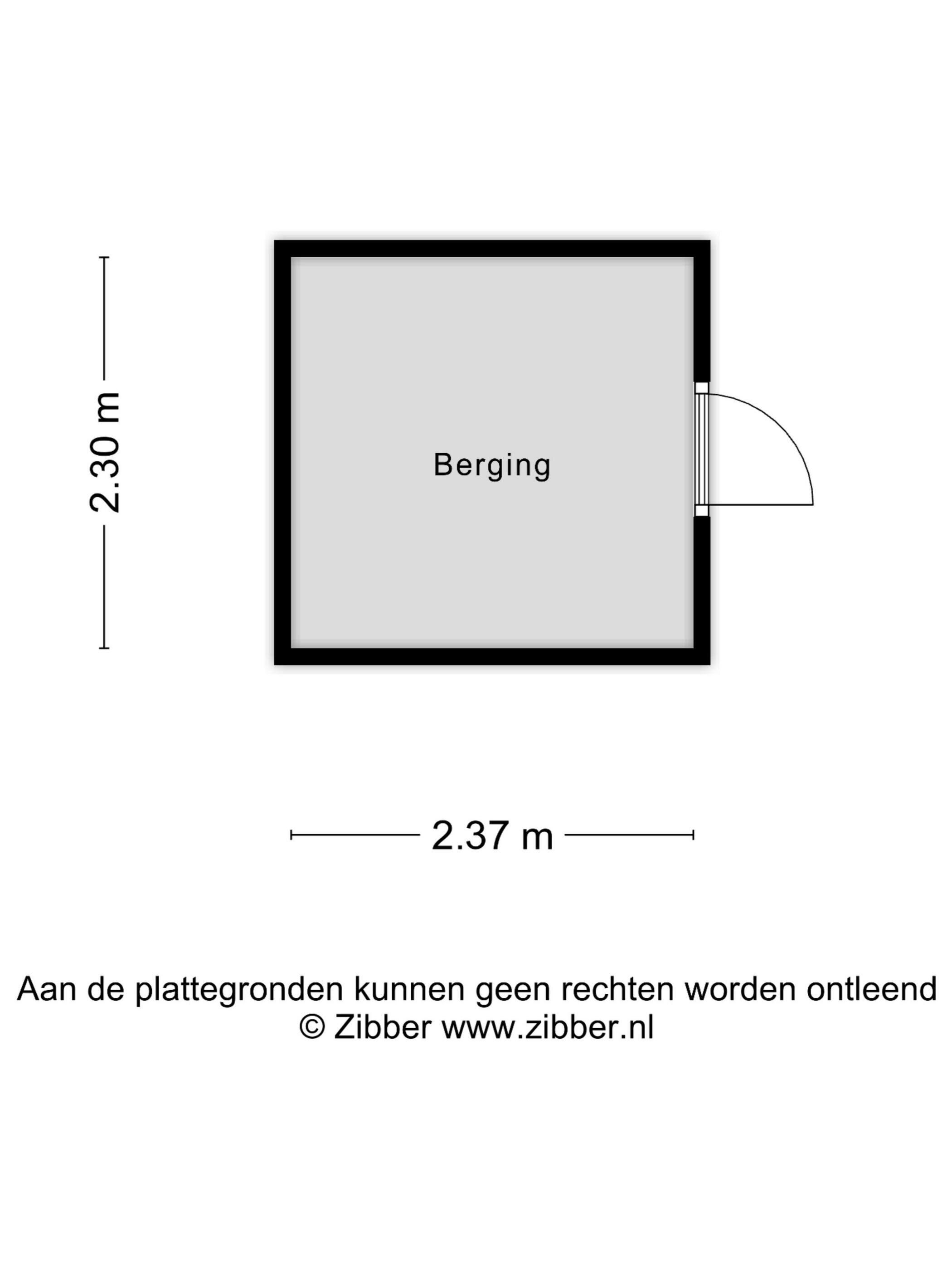 De vrijstaande berging meet circa 2,37 m x 2,30 m en heeft een oppervlakte van 5,4 m². Deze is aangemerkt als externe bergruimte conform NEN2580.